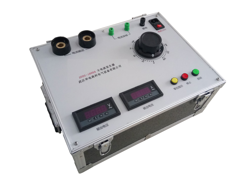 HDDG1000A便攜式大電流發生器采用先進的制造工藝和大容量的環形變壓器。并且帶有LCD數字顯示的電流表。外配鋁合金機箱、PC面板。具有輸出容量大、體積小、重量輕,外形美觀的特點,主要用于電力系統的CT變比、接觸電阻等需要大電流試驗的場合。本產品屬于JT型可移動式結構,它由儀表指示燈板和操作面板組成。儀表指示燈板分大、小量程的選擇開關(鈕子開關),綠色指示燈指的是電源信號,紅色指示燈指的是工作信號。操作面板由啟動按鈕(綠色)、停止按鈕(紅色)以及工作系統組成。該產品后面有“輸入”、“接地”三個接線端子,下端有大電流發生器二次輸出大電流接線端(有開門接線式和不開門接線式)